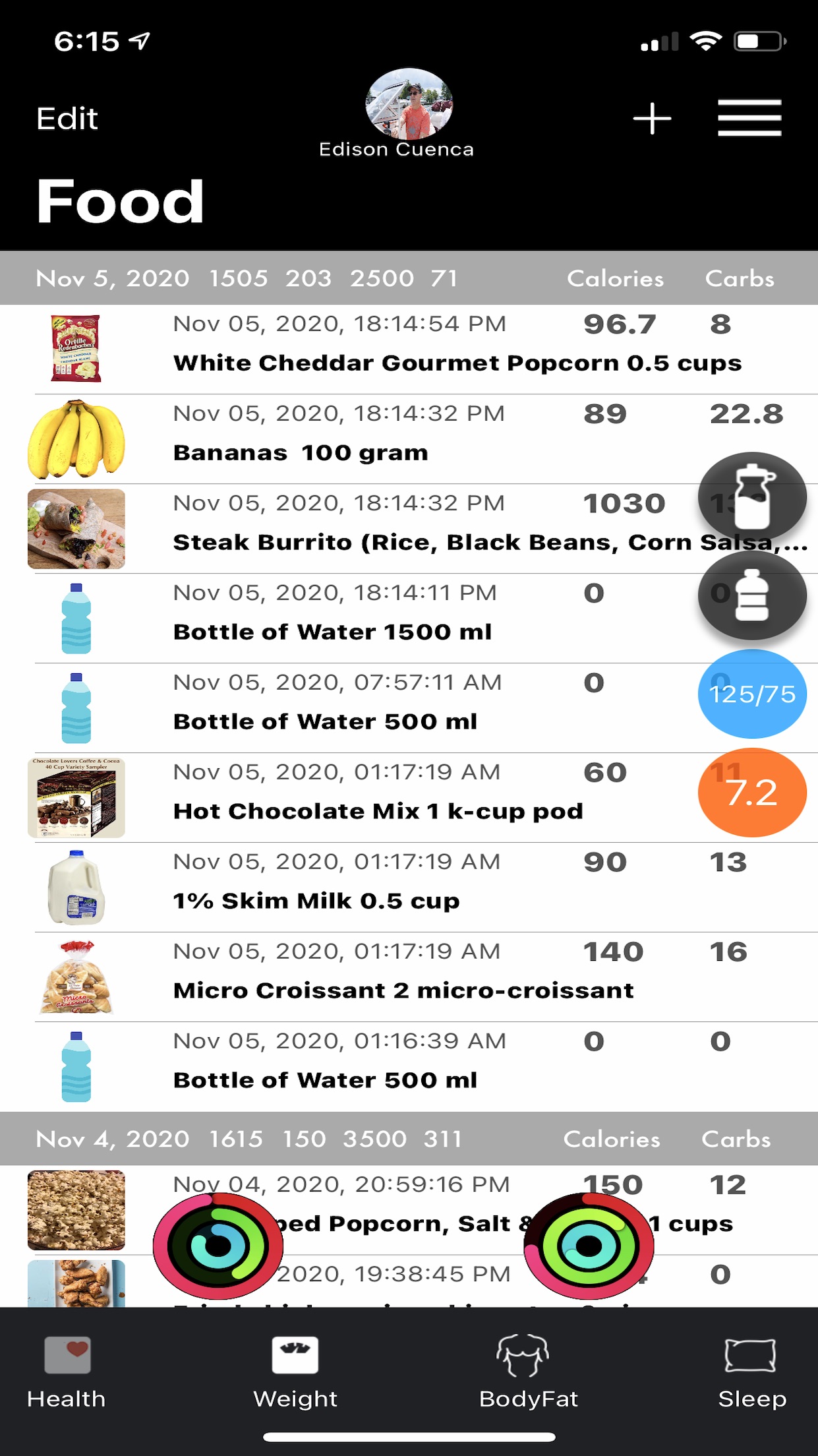 Weight, body fat are pulled from “Health” and pushed to “Apple Watch”