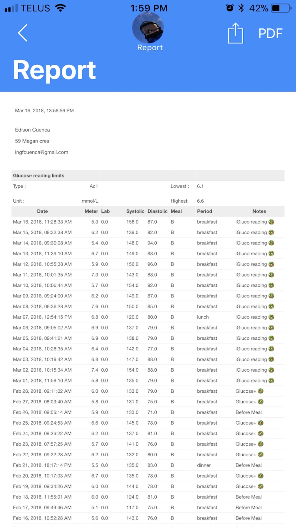 Glucose+ is a glucose, blood pressure, nutrition and activity tracker that allows pull/push daily and current glucose, blood pressure, activity, nutrition, weight and body-fat data to help to control glucose levels.